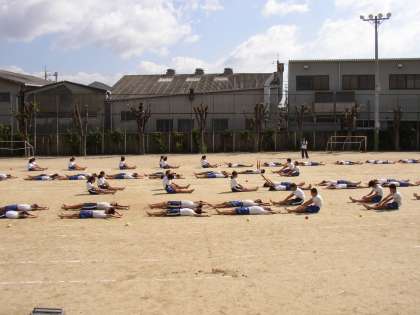 「波」です。4列が,タイミングをとって合わせていきます。きれいな波をご覧ください。