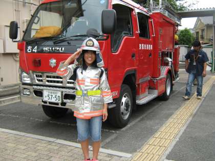 救急隊の制服・消防隊の制服など,着せていただきました。