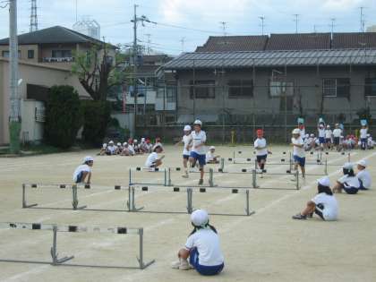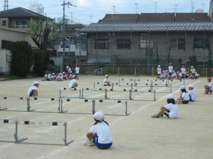 運動会の練習で、ハードル走を頑張っています。最初のころから比べると、かなり速くなりました。飛び方も上手になってきています。