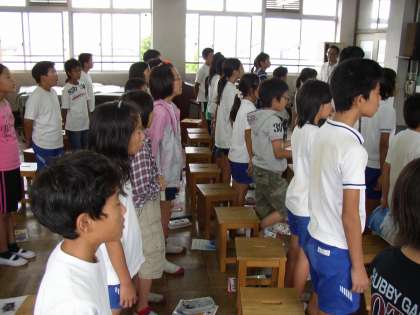 二部合唱で,クラスごとに上のパートと下のパートに分かれて合わせます。