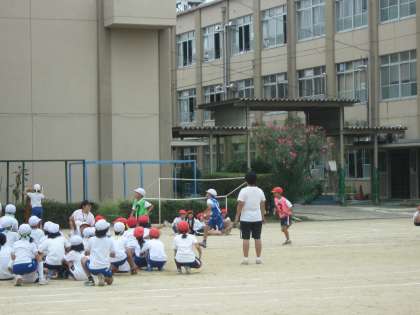 運動会の花形、対抗リレーです。どの色も一生けん命頑張っています。明日は応援をよろしくおねがいします。