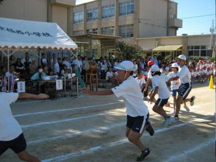 高学年の4色対抗リレーです。