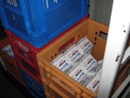 子どもたちが楽しみにしていた冷蔵室です。室温5度。牛乳・乳製品・豆腐・・・食品ごとにきちんと分けて並べてあります。