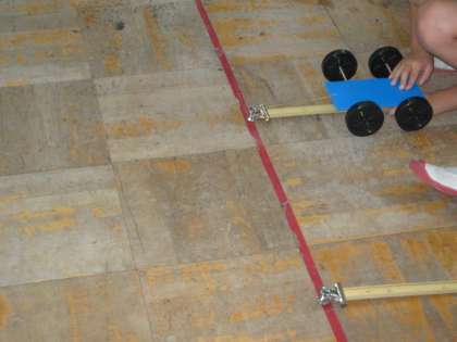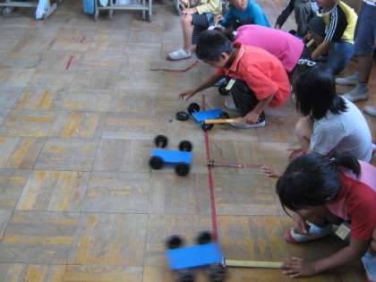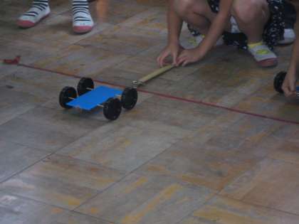 5cm・10cm・15cmとゴムをのばす長さを長くしていくと,車の走る距離も長くなっていきました。