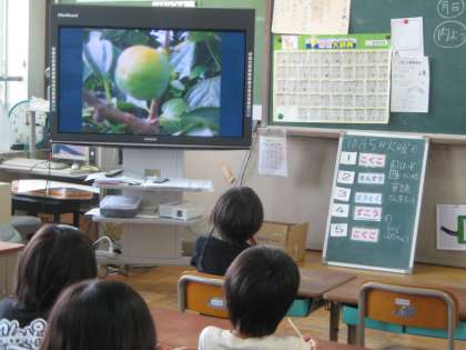 学校に帰って来てから,撮った写真を見ながら,みんなで田んぼや畑の様子,桂川の様子などを思い出して振り返りました。