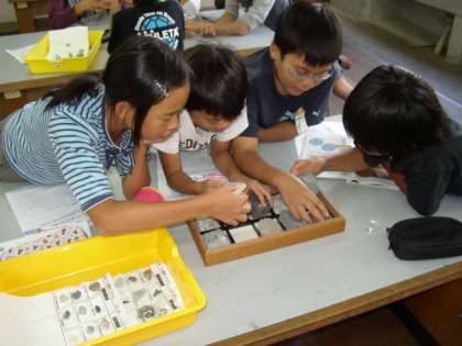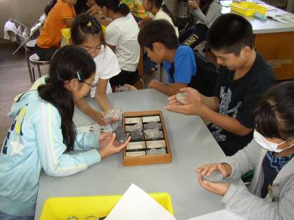 理科の学習で,岩石の観察をしました。たい積岩は,長年にわたって積もってできる石,と火成岩もあることを知りました。実物を観察して,納得・・・したことが多かったようです。 理科って,楽しいね!
