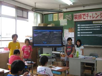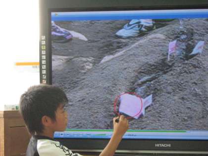 電子黒板を使うと,静止することもできるので,書きこみをして説明しています。
