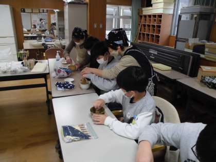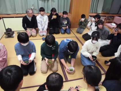地域にお住いの茶道の先生、学校運営協議会の方々にお世話になり、6年生が茶道を体験しました。茶道については、これまで、社会科などで触れていますが、実際に体験をするのはほとんどの子どもたちが初めてとのことでした。