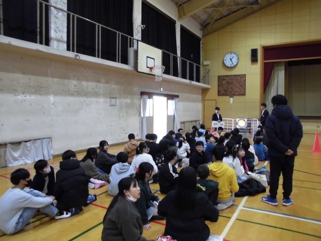 初めに体育館で生徒会のメンバーが学校紹介をしました。楽しくて分かりやすくて温かく笑いのある紹介に、子供たちは聞き入り、時には笑いもあってとっても盛り上がっていました。さすが中学生、プレゼン力に驚く素晴らしい内容でした。次に部活紹介ビデオを見ました。こちらも部活ごとに工夫があり個性も溢れていてとても見ごたえのあるものでした。