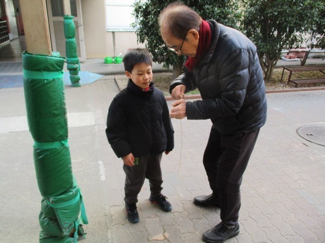 昔のあそびは、なかなか最初はうまくいきませんでしたが、学校運営協議会や地域の方々に、コツを教えていただき少しずつですができるようになっていきました。楽しそうに何度も挑戦する姿がありました。今日をきっかけにして、昔のあそびや地域の方々との触れ合いを大切の感じる心が育ってくると思います。お寒い中、学校にお越しいただき、学校運営協議会や地域の方々には、感謝の気持ちでいっぱいです。ありがとうございました。