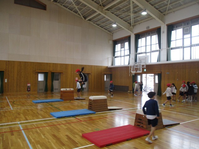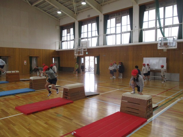 体育科の学習で「とび箱運動」に取り組んでいます。今できる技の出来栄えをよくすることや、頑張ればできそうな技にチャレンジするなど、みんな意欲的に頑張っています。手のつき方や踏み切りなど、まだまだ工夫できるところがあります。少しでも「できた!」が増やせるように取り組みます。