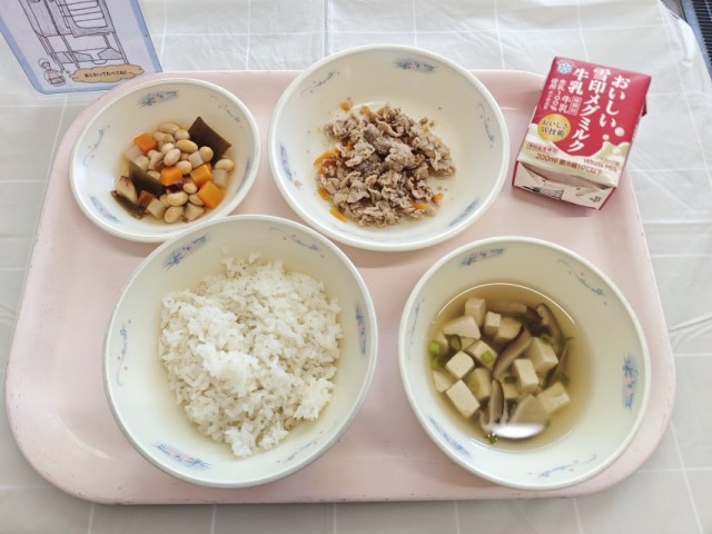 今日の五目煮豆はスチコン(スチームコンベクションオーブン)を使ったスチコン献立です。スチコンで調理した大豆はふわっとやわらかく仕上がり、大豆が苦手な子にとっても食べやすくなります。