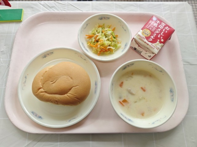 そんなおいしいパンの中でも子どもたちに特に人気なのが今日の「バターうずまきパン」です。バターの香りがよく、じゃがいものクリームシチューとの相性も抜群で初めて食べる1年生も「パンは好きじゃなかったけれど、これはおいしい!」「シチューと一緒に食べたら最高!」と絶賛でした。