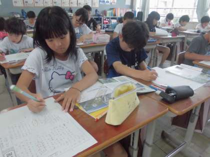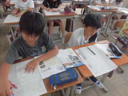 社会科の学習で『低い土地のくらし 〜海津市〜』について学習をしました。この時間では,水害からくらしを守るくふうや水を生かすくふうについて学習したことを新聞にまとめました。
