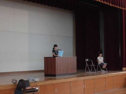 月曜日は葛野タイムがありました。今回は4年生が「みさきの家」へ宿泊学習に行って感じたことを発表してくれました。