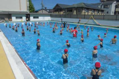 月曜日に比べると気温は高かったですが,水は冷たかったようでキャーキャー叫びながら入っていました。水遊びでは,くらげうきや大文字など体を浮かす遊びをしたり,碁石ひろいや輪くぐりなどをしたりしました。