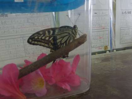 観察の途中で,さなぎから出てきて羽根を広げようと頑張るアゲハチョウの姿を見ることができた子どもたちもいました。アゲハチョウの美しい羽根に「きれ〜い。」と感動していました。観察が終わってすぐに,外へはなしてあげることにしました。命の美しさがひしひしと伝わってきた出来事でした。