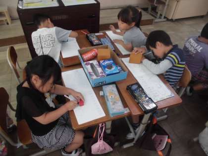 今回はノートに形をうつして絵を描きました。