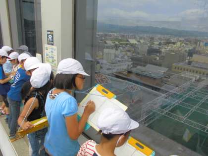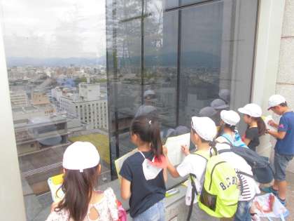京都駅の屋上に到着!まちの様子を観察しています。