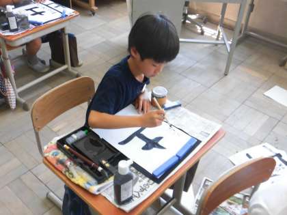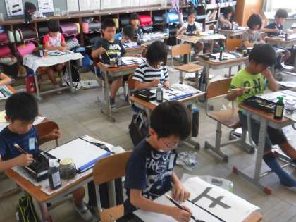 今日の書写は,縦画の筆使いに気をつけて,「土」を書きました。まっすぐ書くことが難しかったようですが,繰り返し練習することで上手にかけるようになりました。他にも「字のバランス」にも気をつけて書きました。