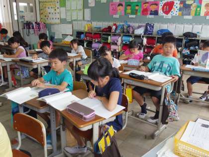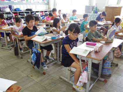 国語では「もうすぐ雨に」というお話を学習します。今日は,初めてお話を聞いてどう思ったのか,感想を書きました。少し長いお話でしたが,子どもたちは教科書の字を一生懸命目で追いながら聞いていました。