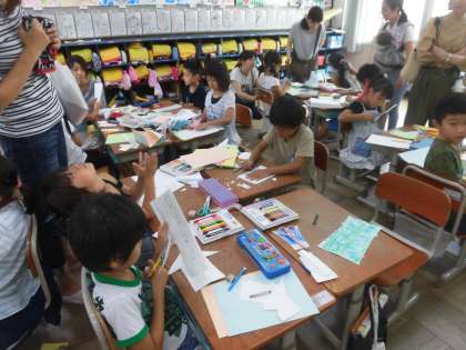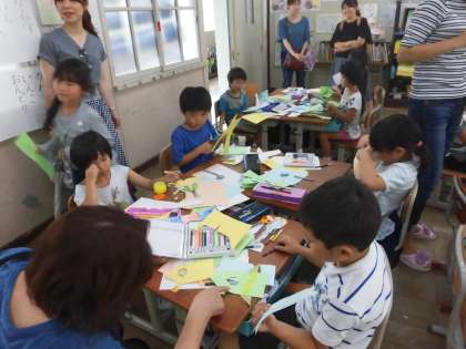 子どもたちにとっては,立つように紙を切るのは難しかったようで,悪戦苦闘していました.来週,もう一度「おって たてたら」の授業があります.