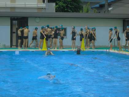 今日の水泳学習では検定を行いました。一人一人が自分に合った級を選び,挑戦していました。