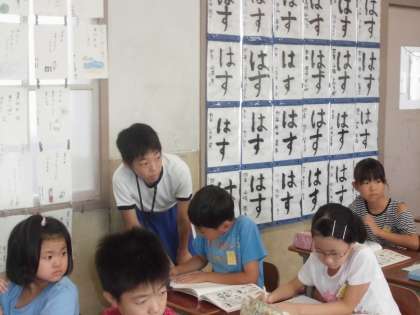 火曜日から,西京極中学校のお兄さんお姉さんがチャレンジ体験で葛野小学校に来ています。4年生にも,バレーといちごが大好きなお兄さんが来てくれて,読み聞かせをしてくれたり,給食を一緒に食べたり,勉強でわからないところを教えてくれたりしました。