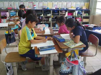 社会では「商店のはたらき」という学習をしています。それぞれの家で実施した買い物調べをもとに,班で交流しました。葛野の町には,たくさんのお店があることを知りました!