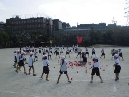 子どもたちは,玉入れのときに踊るダンスを一生懸命練習しています。
