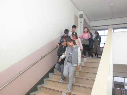 ガイドの人はどのようなことに気をつけなければいけないのか,どうすれば不安な気持ち・怖い気持ちが少なくなるのか,一生懸命考えながらペアの人に声をかけていました。