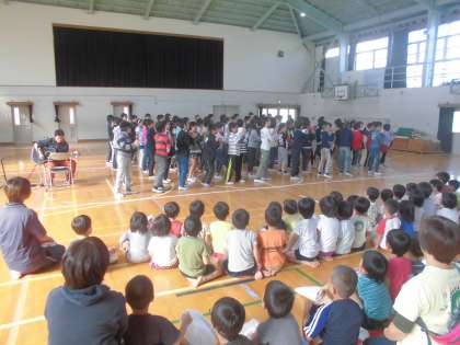 最後は体育館に集まり,5年生からは歌とダンスを披露し,菜の花保育園のみなさんからは歌のプレゼントをいただきました。