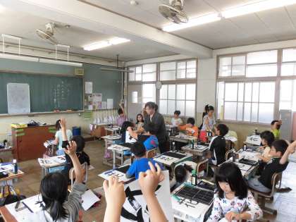 最後の一角まで集中し「ふー。」「先生,みてー♪うまくいったよ♪」
