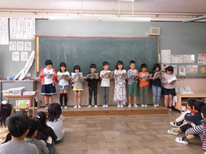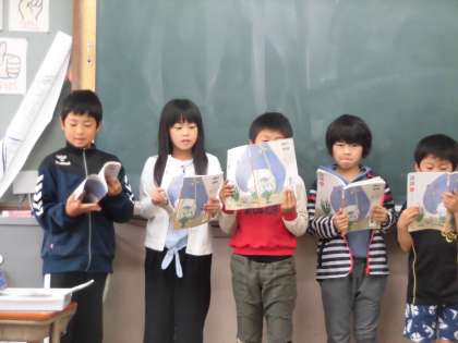 国語科「きつつきの商売」の学習で音読発表会をしました。