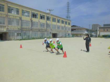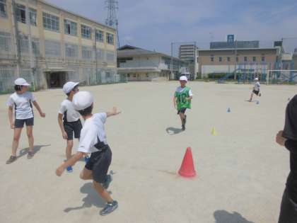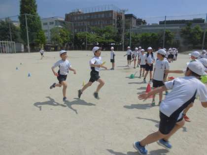 リレーの学習の最後に学年対抗リレーを開催しました。
