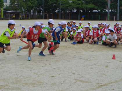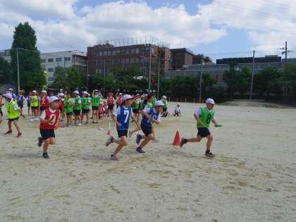 体育ではリレーを学習しています。最近は天候に恵まれず運動場での体育ができない日が続いていましたがやっとできました!!最後まで全力で走る姿,一生懸命友達を応援する姿が素晴らしかったです。もっとバトンパスの練習をすれば更に速く走ることができそうです★