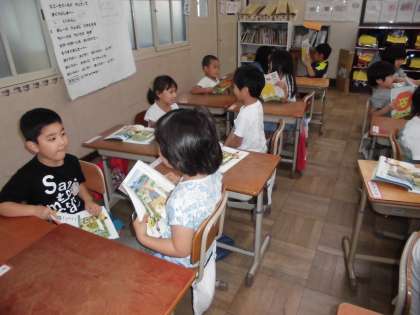 国語の「えをみて はなそう」では,質問をする人,こたえる人に分かれてお話をしました。