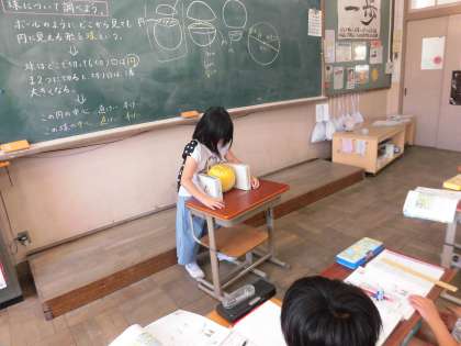 算数科「円と球」の学習で球について調べました。