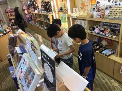 お土産売り場での一コマです。「おうちの人はどんなものをもらったらうれしいかな」,「ん〜〜,でもおこづかいが足りるかな・・・」。いろんなことを考えながら,一生懸命に選んでいるのでしょうね。どんなおみやげを買って帰ってくるのか楽しみですね!