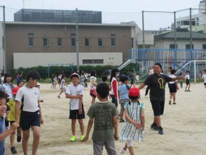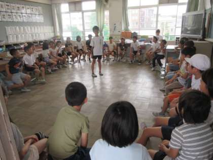 第1回たてわり会議後の中間休みに,運動場で遊ぶグループと教室で遊ぶグループに分かれて,たてわり遊びをしました。異年齢集団の中で,みんな,教室とは少し違った表情を見せながらも,楽しく活動していました。