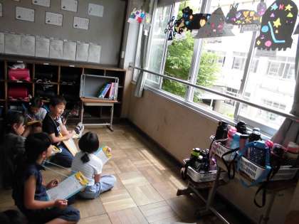 図画工作科で制作した「ひかりのプレゼント」の作品を学年で鑑賞しました。初めてのカッターナイフに苦戦しながら仕上げた作品をみながら,お互いの作品のよさや,その中にある工夫をたくさん見つけ,鑑賞カードにメモしていました。