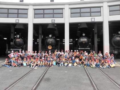 なが〜〜〜い距離を歩き,なんとか鉄道博物館に到着しました。お昼ご飯を食べてエネルギーを充電し,いざ自由行動!!!