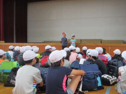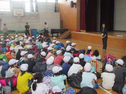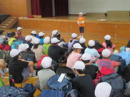 待ちに待ったみさきの家での宿泊学習。天気は最高・・・ではありませんが涼しくてこれもいいかな。とにかく雨は降らないでほしい!どんな楽しいことが待っているのか,期待に胸が膨らみます。司会の人,はじめの言葉を言ってくれた人。素敵でしたよ!ちなみに今日のみんなのめあては「協力」だそうです。浦山ラリーに野外炊事,ナイトハイクと今日は活動が盛りだくさんですが,みんなでしっかり「協力」して楽しい思い出をつくってきて下さいね。