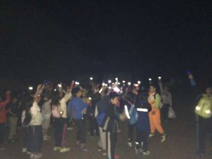 ナイトハイク後、美しく輝く星を見た後に、今度は自分たちが明かりを灯してみようと言うことで、空に懐中電灯の明かりを向けてみました。