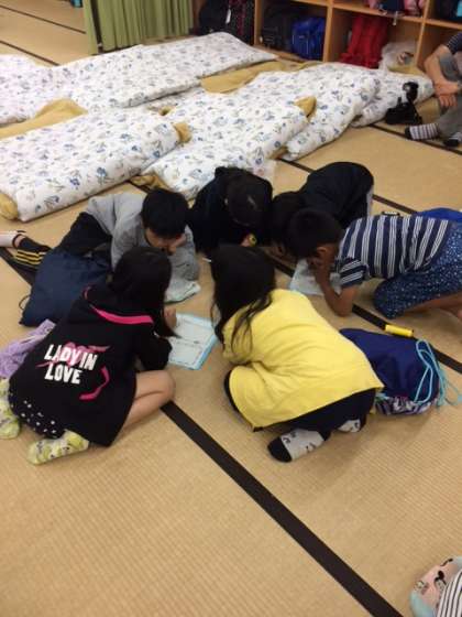 夕べの集い、今日は反省することがたくさんあったようです。しかし、明日は5分前行動をする!けじめをつける!と前向きに話し合い明日の活動を楽しみにしていました。