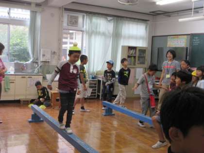 葛野小学校で取り組んでいる児童会活動の中でも,毎年,子どもたちが楽しみにしているピクニックスポーツ(通称ピクスポ)が10月4日(木)にありました。たてわりグループの友達と協力しながら,たくさんのゲームコーナーを周り,点数を競います。高学年の子どもたちが下級生の手を引いたり,声をかけたりしながら仲よく活動していました。
