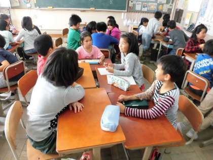 大縄大会や百人一首大会,おいもパーティーなど,これからどんな楽しいことがあるのか,どうすれば上手に伝えることができるのか,班で話し合っています。