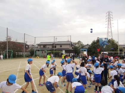 11月12日(月)は,合同運動会でした。準備運動のダンスや玉入れ,バルーンなど,学校でこれまで練習してきた競技や演技に,わかばのみんなで参加しました。当日は,育成のお友だちや,梅津北小学校の交流学年のお友だちともなかよくなることもできました。
