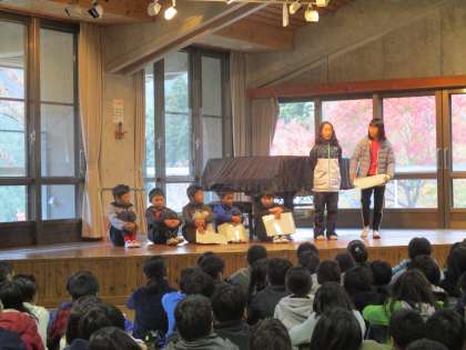 その後,学校紹介をしました。葛野小学校代表の人たちが,学校と地域の紹介をしてくれました。はきはきと相手にわかりやすくしっかりと伝えることができました。