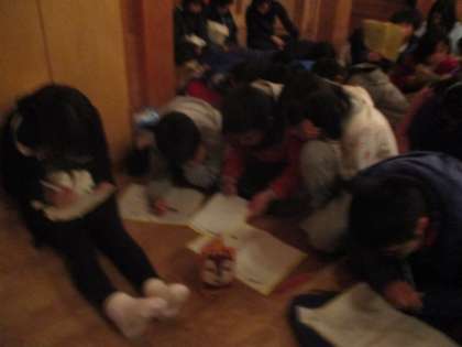 今日1日の反省会です。明日は他校との調整の関係で,午前と午後の予定が入れ替わることに。先生の話にしっかり耳を傾け,変更点をしっかりメモする子どもたち。本当に素晴らしいですね。すごく頼もしく見えます。